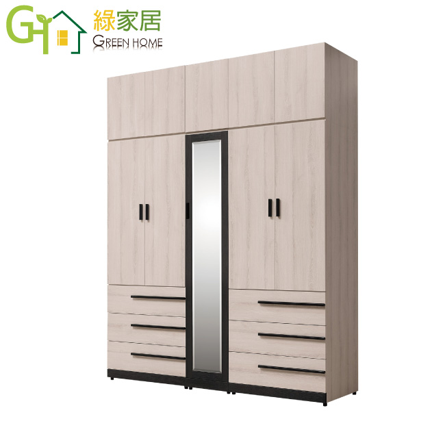 【綠家居】艾咪 時尚6.7尺鏡面六抽高衣櫃/收納櫃組合(吊衣桿+六抽屜+穿衣鏡)