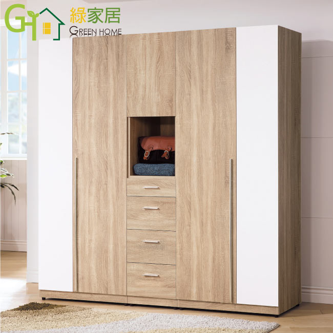 【綠家居】艾斯威 時尚6.4尺雙色開門衣櫃/收納櫃組合(吊衣桿+五抽屜)