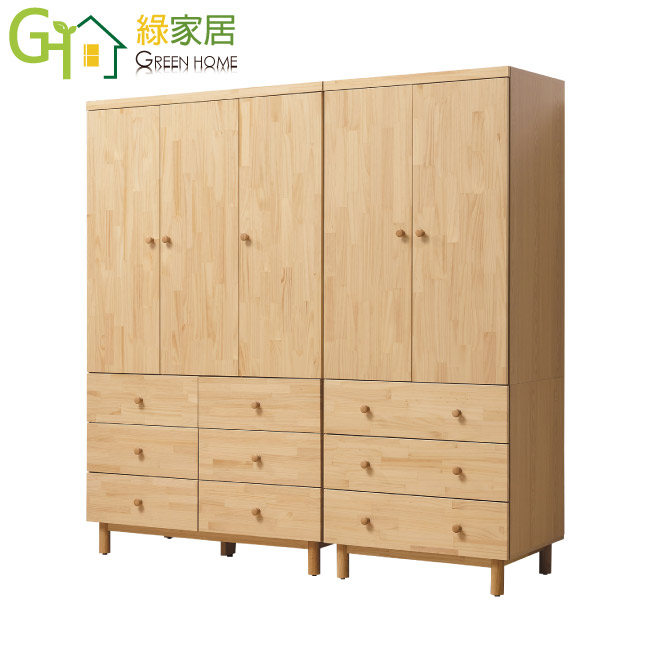 【綠家居】謝米德 時尚6.7尺實木開門衣櫃/收納櫃組合(吊衣桿+九抽屜)