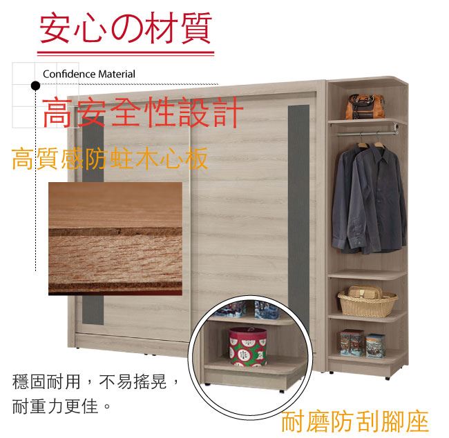 材質 | ◆產品名稱:【綠家居】 額爾 現代8.6尺推門衣櫃/收納櫃組合 產品尺寸: 收納櫃尺寸:(寬)258x(深)60x(高)202/公分 ◆材質: 材質:防蛀木心板+防刮耐磨腳座 材質:五金滑軌結構 塗漆:優利坦全包式耐磨噴漆處理 |