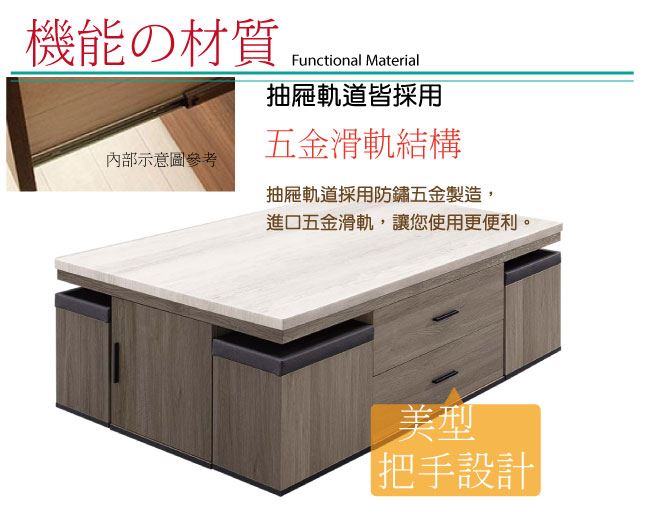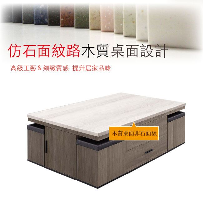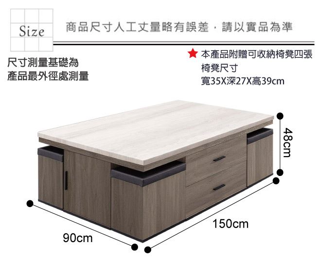 - ◆產品名稱:【綠家居】艾金森5尺四抽木製大茶几(仿雲紋石面木質桌面板+內附小椅凳四張)