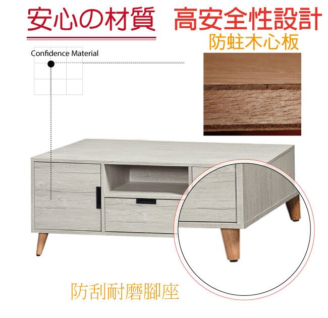 商 品 介 紹 | 【綠家居】夏艾亞淺橡4.3尺二門單抽大茶几 淺橡木紋色系+現代簡約風格+安心材質製造,整體採用防蛀木心板+防潮耐磨腳座+五金滑軌結構等安心材質製造,產品外層採用防潮耐磨噴漆處理搭配採用開門櫃+單抽屜+開放式收納等收納空間設計,全由專人配送到家,專業安心服務,替你省下更多時間! 【商品特色】 淺橡木紋色系+現代簡約風格+安心材質製造,使用放心+搭配居家更便利 採用防蛀木心板+防潮耐磨腳座+五金滑軌結構等安心材質製造 產品外層採用防潮耐磨噴漆處理 搭配採用開門櫃+單抽屜+開放式收納等收納空間設計 此商品不需要DIY組立,此商品為組立後之成品 品質保證、專業設計、貼心服務 全由專人配送到家,專業安心服務,替您省下更多時間