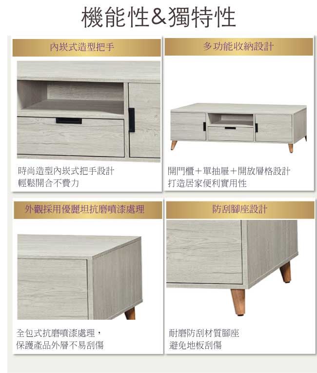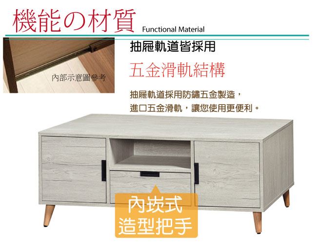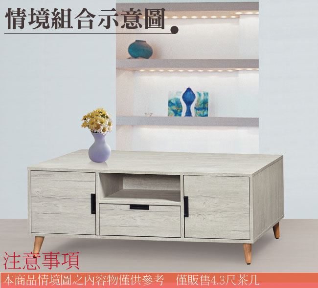 【綠家居】夏艾亞淺橡4.3尺二門單抽大茶几