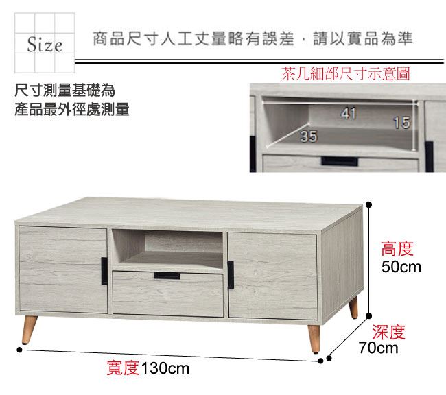 材質 | ◆產品名稱:【綠家居】夏艾亞淺橡4.3尺二門單抽大茶几 尺寸:(寬)130x(深)70(高)50/公分 ◆材質: 材質:防蛀木心板+防潮耐磨腳座+五金滑軌結構 噴漆:防潮耐磨噴漆處理
