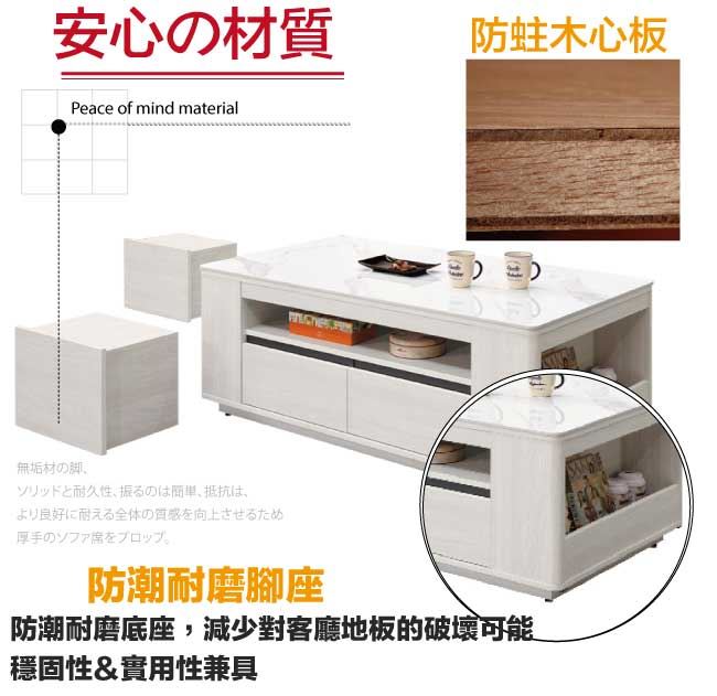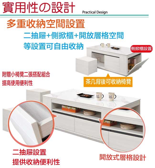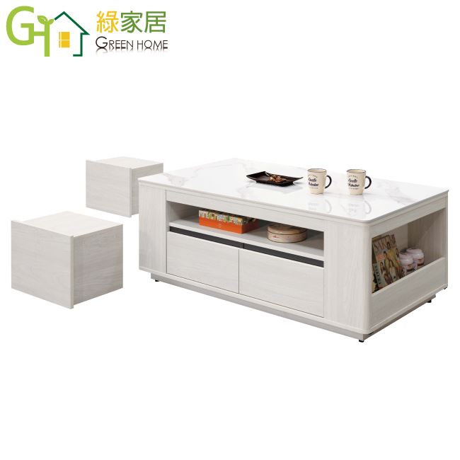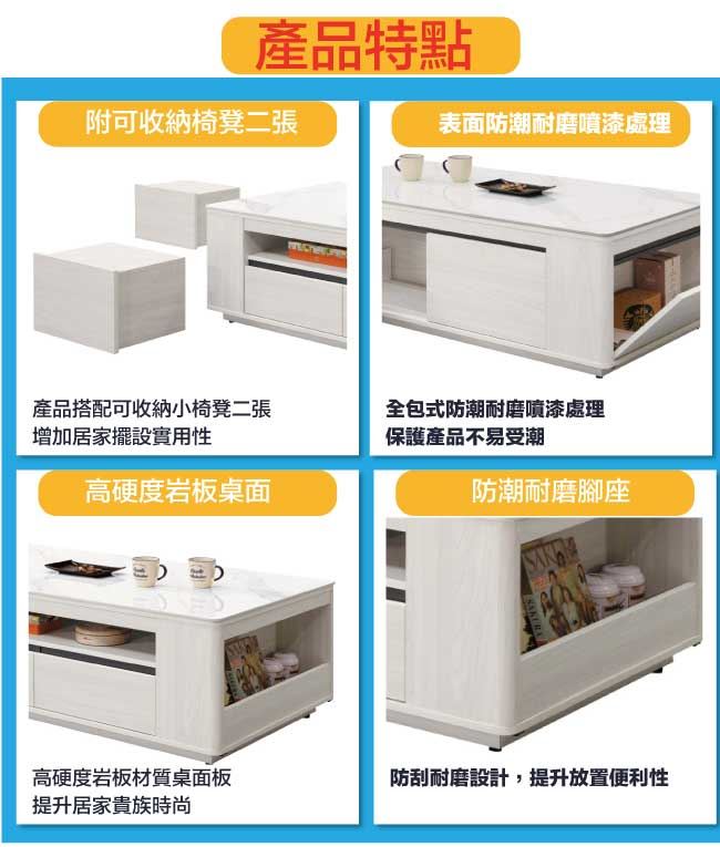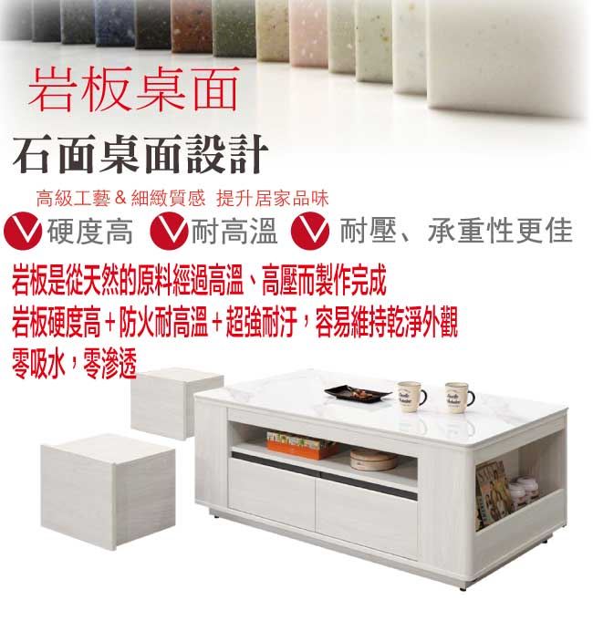 【綠家居】魁北克4.3尺岩板多功能大茶几(附收納椅凳二張)
