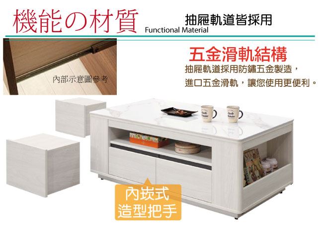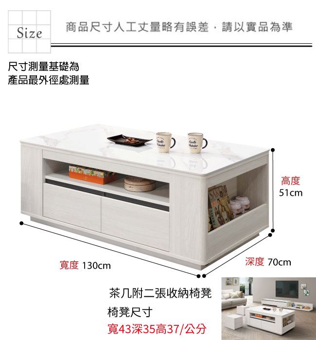 材質 | ◆產品名稱:【綠家居】魁北克4.3尺岩板多功能大茶几(附收納椅凳二張) 尺寸:(寬)130x(深)70(高)51公分 ◆材質: 材質:防蛀木心板+防潮耐磨腳座+五金滑軌結構+12mm高硬度岩板 噴漆:防潮耐磨噴漆處理