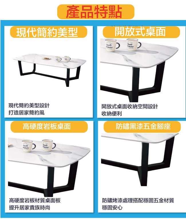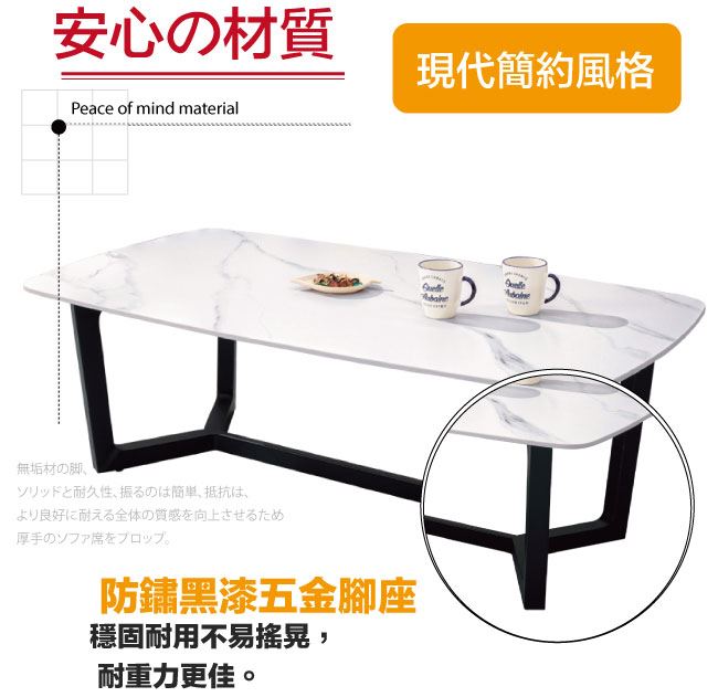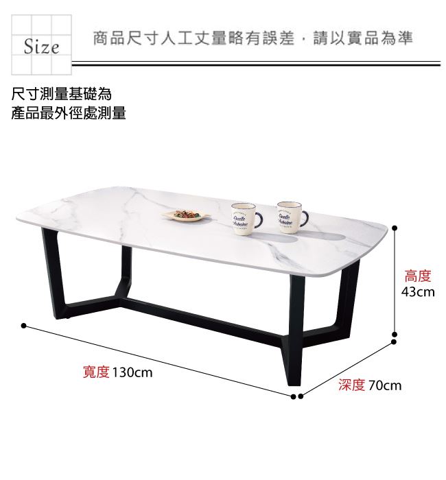 材質 | ◆產品名稱:【綠家居】柯安沙4.3尺岩板大茶几 尺寸:(寬)130x(深)70(高)43公分 ◆材質: 材質:防鏽黑漆五金腳座+12mm高硬度岩板