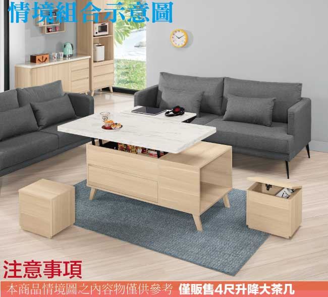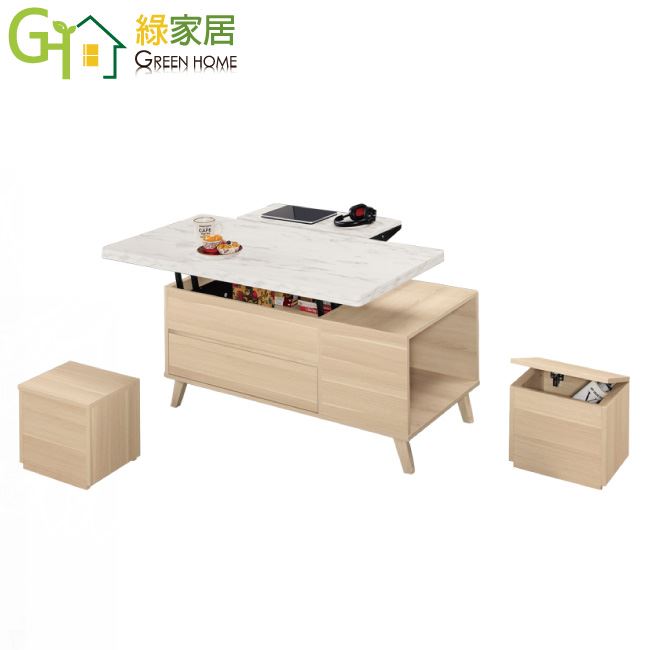 【綠家居】蘿莎莉4尺可升降機能性大茶几(附收納椅凳二張)