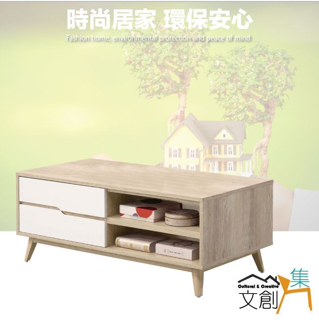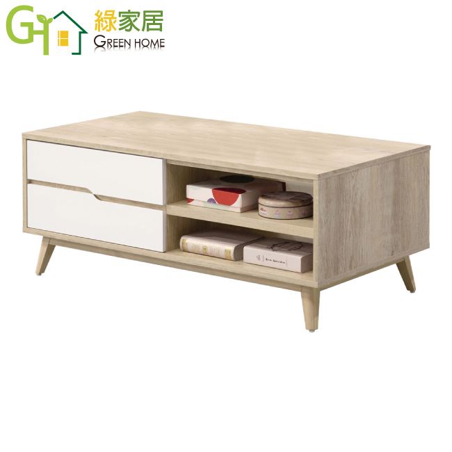 商 品 介 紹 | 【綠家居】亞果雙色4尺二抽大茶几 橡木紋雙色系+現代簡約風格+安心材質製造,使用放心+搭配居家更便利,整體採用松木實木+防蛀木心板+防潮MDF板材+防潮實木腳座+五金滑軌結構等材質搭配外層採用優莉坦耐磨&亮面全包式噴漆處理 ,採用二抽屜+開放式層格等收納空間設計,全由專人配送到家,專業安心服務,替你省下更多時間! 【商品特色】 橡木紋雙色系+現代簡約風格+安心材質製造,使用放心+搭配居家更便利 松木實木+防蛀木心板+防潮MDF板材+防潮實木腳座+五金滑軌結構等材質 採用二抽屜+開放式層格等收納空間設計 此商品不需要DIY組立,此商品為組立後之成品 品質保證、專業設計、貼心服務 全由專人配送到家,專業安心服務,替您省下更多時間