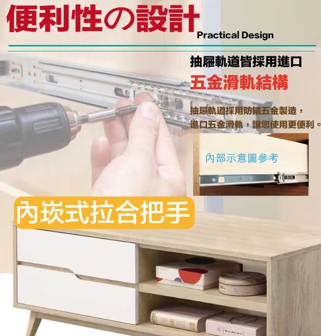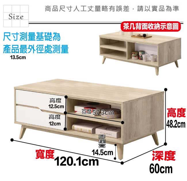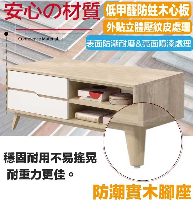 材質 | ◆產品名稱:【綠家居】亞果雙色4尺二抽大茶几 尺寸:(寬)120.1x(深)60(高)48.2公分 ◆材質: 材質:松木實木+防蛀木心板+防潮MDF板材+防潮實木腳座+五金滑軌結構 噴漆:防潮耐磨&亮面噴漆處理