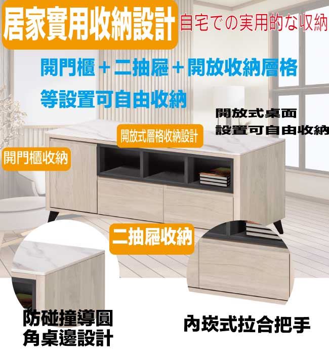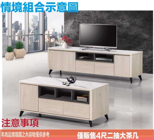 【綠家居】麥里安4尺岩板單門二抽大茶几