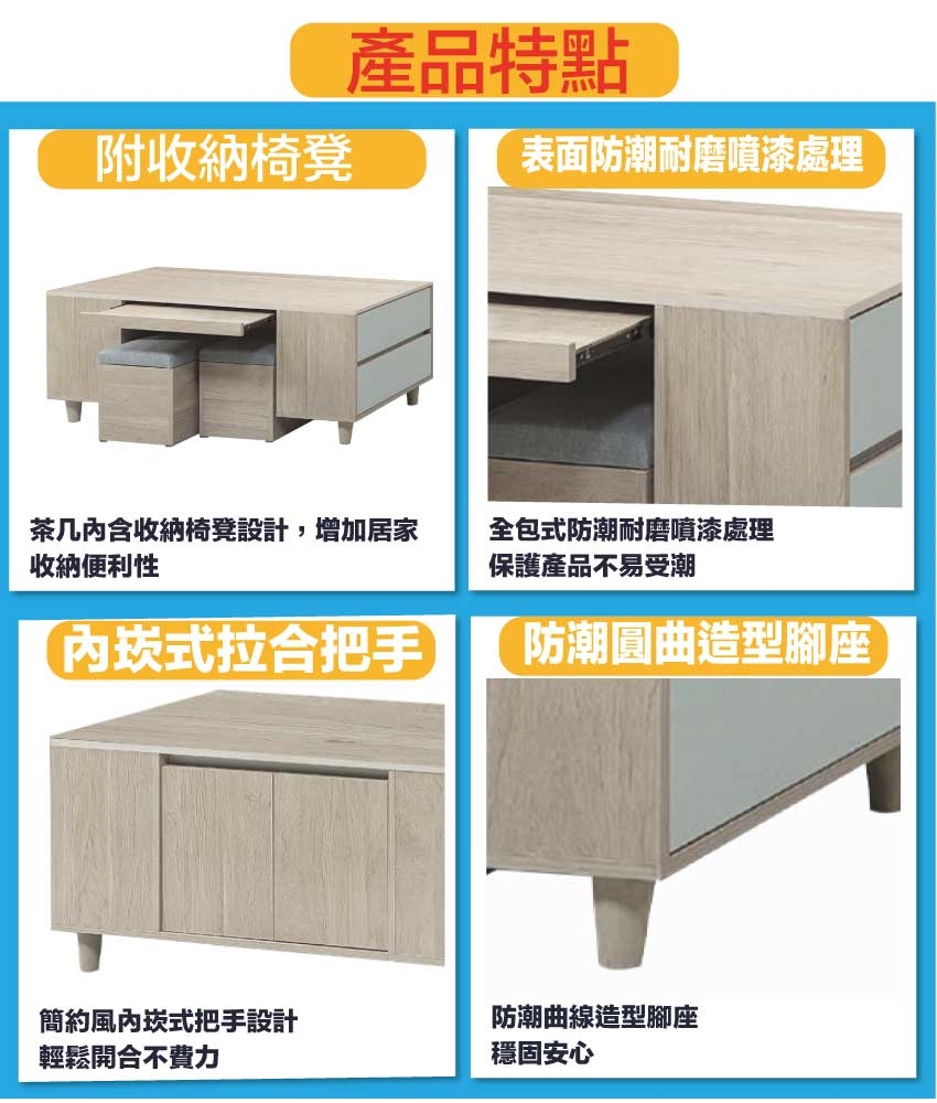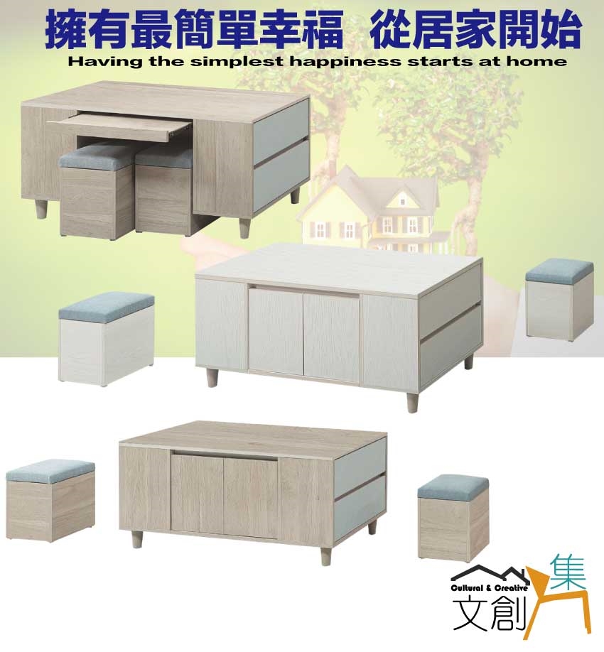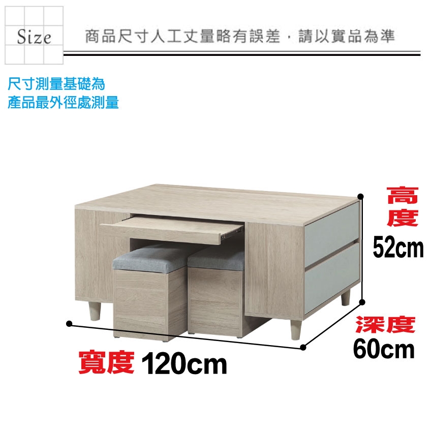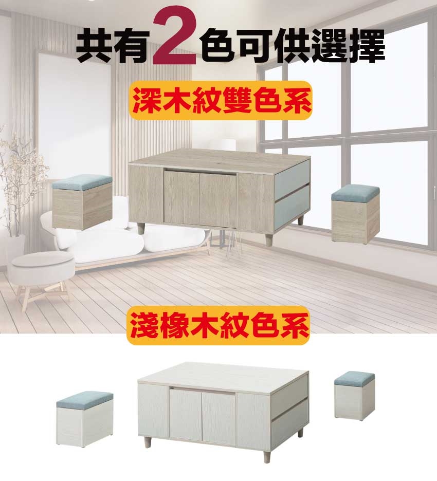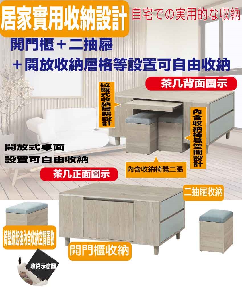 - ◆產品名稱:【綠家居】盧班4尺二門二抽大茶几(二色可選+附收納椅凳二張)