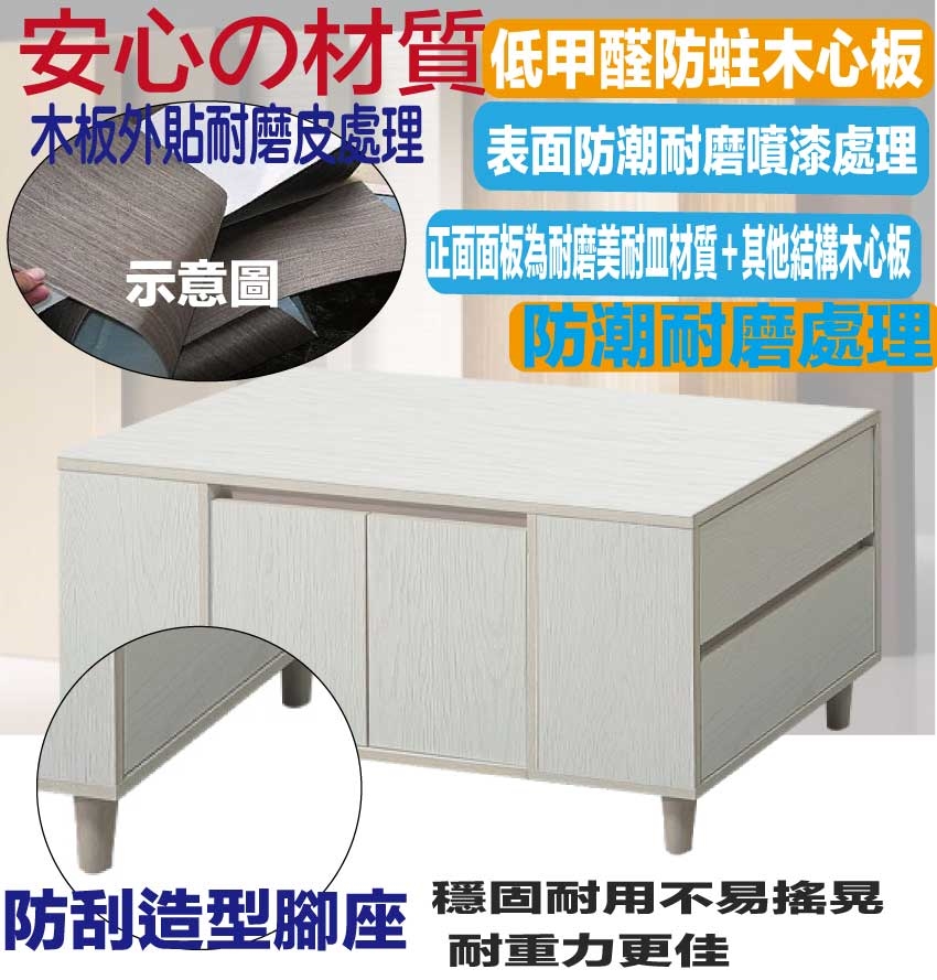 採用防蛀木心板+防刮造型腳座+五金滑軌結構等安心材質製造