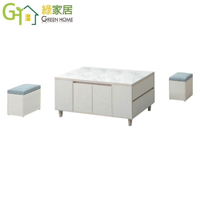 【綠家居】盧班岩板4尺二門二抽大茶几(二色可選+附收納椅凳二張)