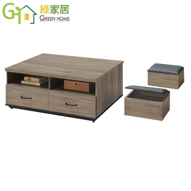 【綠家居】摩卡4尺二抽茶几(二色可選+附贈可收納椅凳二張)