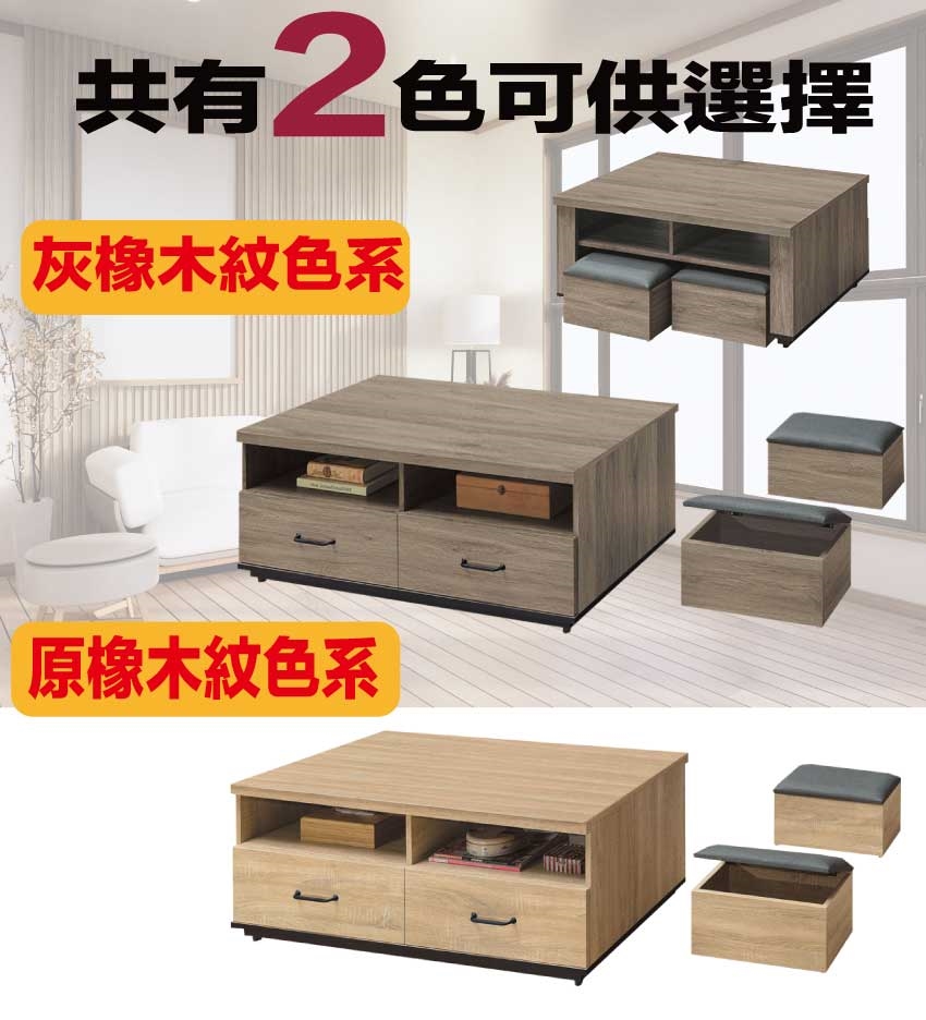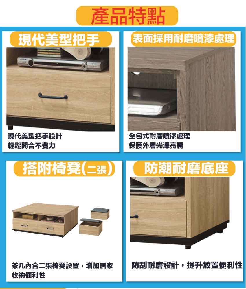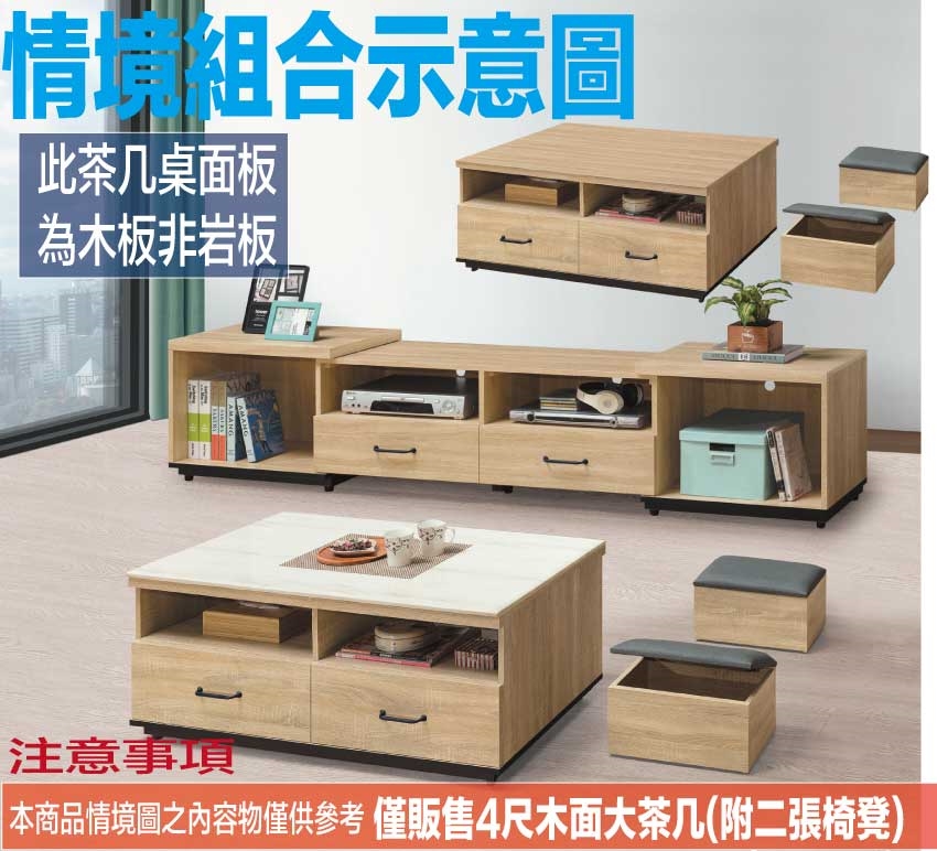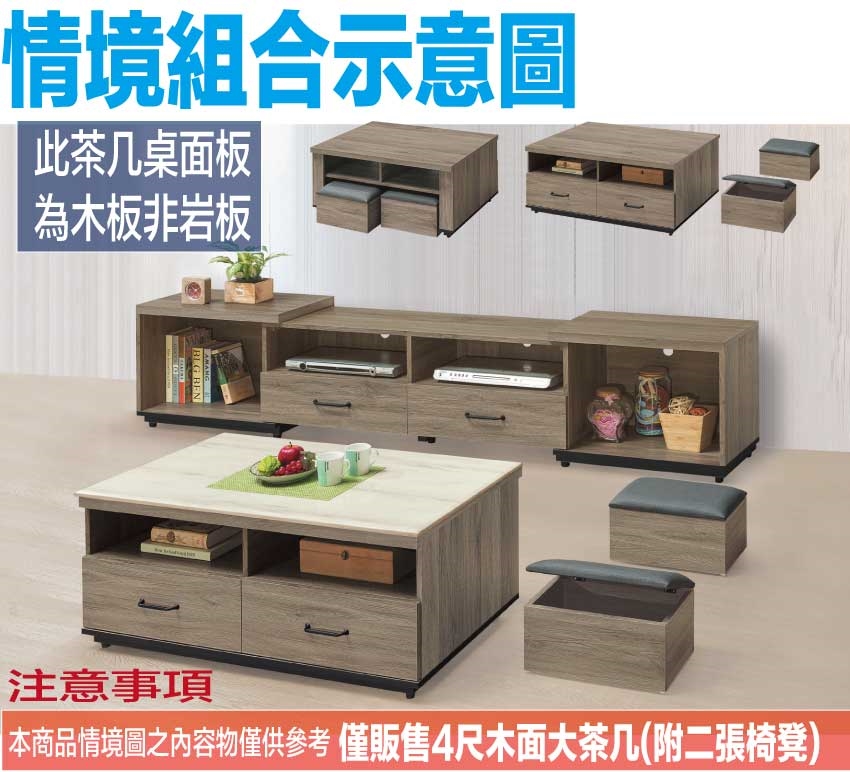 - ◆產品名稱:【綠家居】摩卡4尺二抽茶几(二色可選+附贈可收納椅凳二張)