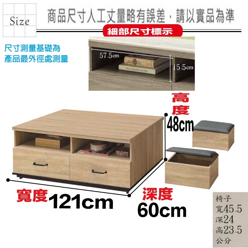 - 尺寸:(寬)121x(深)60x(高)48/公分