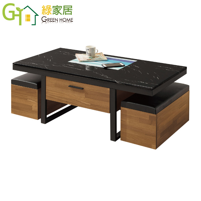 【綠家居】巴莉 時尚4尺雲紋石面大茶几(二色可選+附收納椅凳)