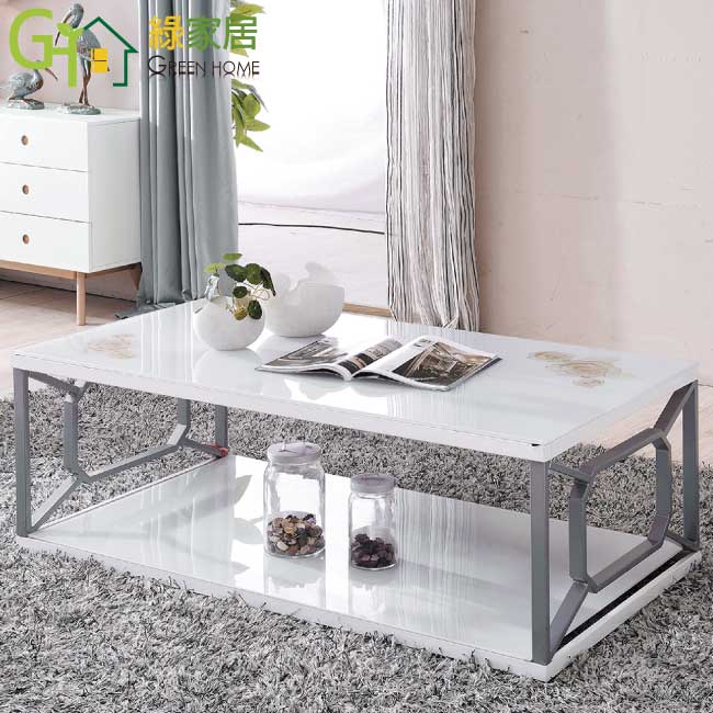 【綠家居】卡特 時尚白4.3尺玻璃大茶几