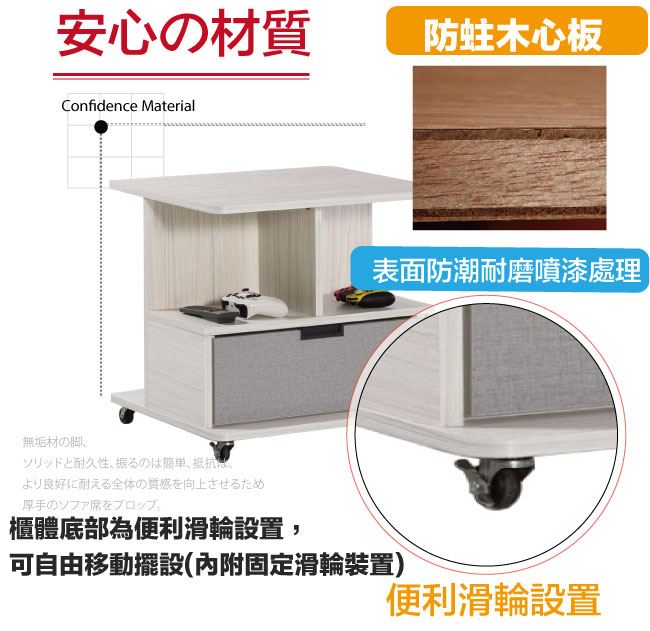 商 品 介 紹 | 【綠家居】波卡亞雙色1.9尺皮革活動小茶几 木紋雙色系+現代簡約風格+安心材質製造,使用放心+搭配居家更便利,整體採用防蛀木心板+便利滑輪設置(含可固定滑輪壓扣)+五金滑軌結構+外貼透氣皮革等材質搭配外層採用優莉坦耐磨全包式噴漆處理 ,採用單抽屜+開放層格等收納空間設計,全由專人配送到家,專業安心服務,替你省下更多時間! 【商品特色】 木紋雙色系+現代簡約風格+安心材質製造,使用放心+搭配居家更便利 小茶几底部為便利滑輪設置可自由移動擺設,另設有可固定滑輪壓扣裝置可固定方位增加使用安全性 防蛀木心板+便利滑輪設置(含可固定滑輪壓扣)+五金滑軌結構+外貼透氣皮革等材質 採用單抽屜+開放層格等收納空間設計 此商品不需要DIY組立,此商品為組立後之成品 品質保證、專業設計、貼心服務 全由專人配送到家,專業安心服務,替您省下更多時間
