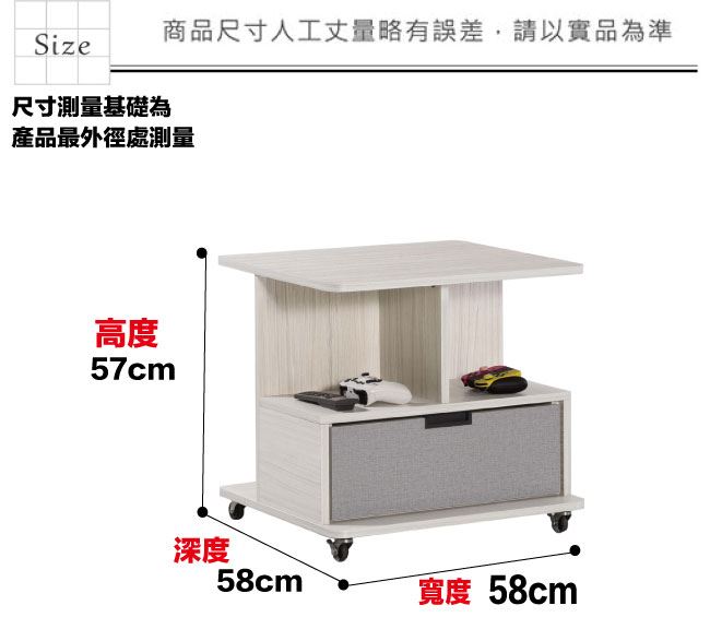 材質 | ◆產品名稱:【綠家居】波卡亞雙色1.9尺皮革活動小茶几 尺寸:(寬)58x(深)58(高)57/公分 ◆材質: 材質:防蛀木心板+便利滑輪設置(含可固定滑輪壓扣)+五金滑軌結構+外貼透氣皮革 噴漆:防潮耐磨噴漆處理