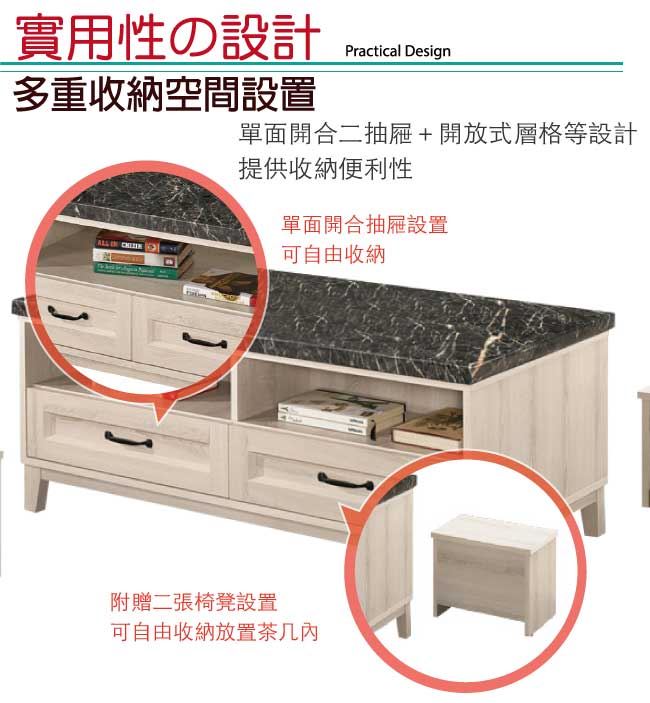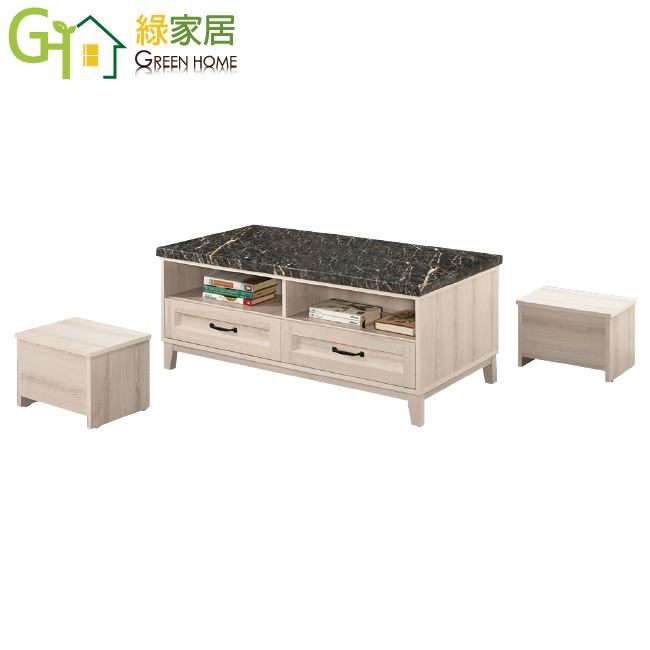 【綠家居】班特 時尚3.9尺雲紋石面大茶几(附收納椅凳二張)