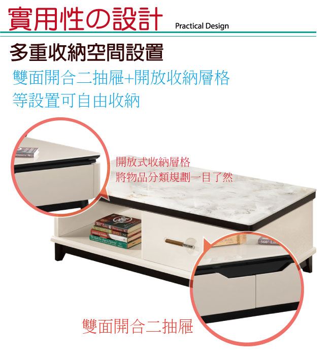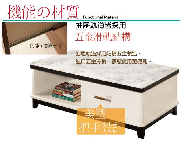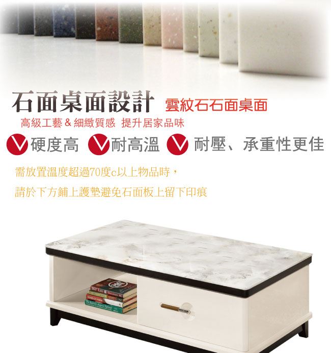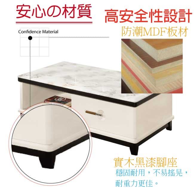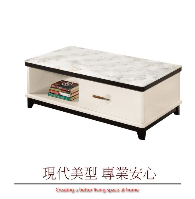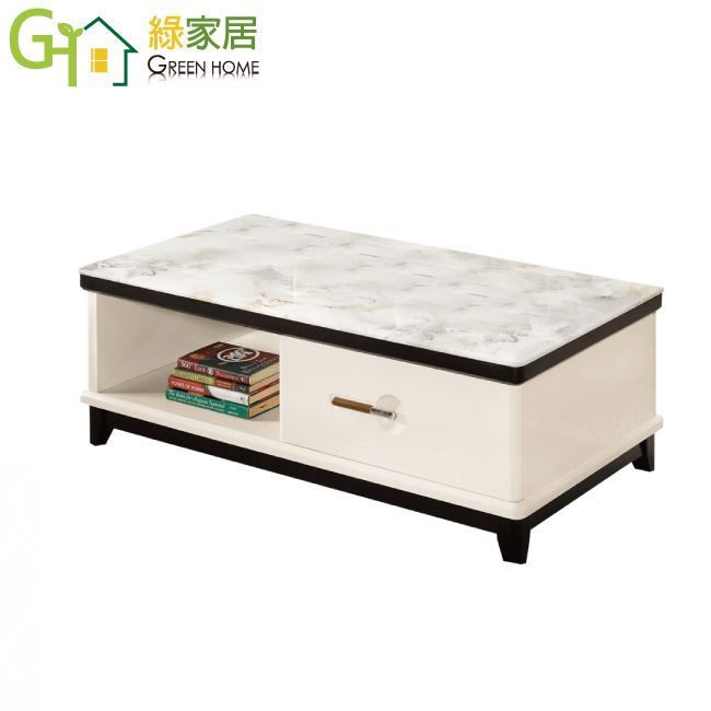 【綠家居】貝蒙 典雅白4尺雲紋石面二抽大茶几