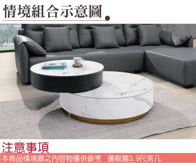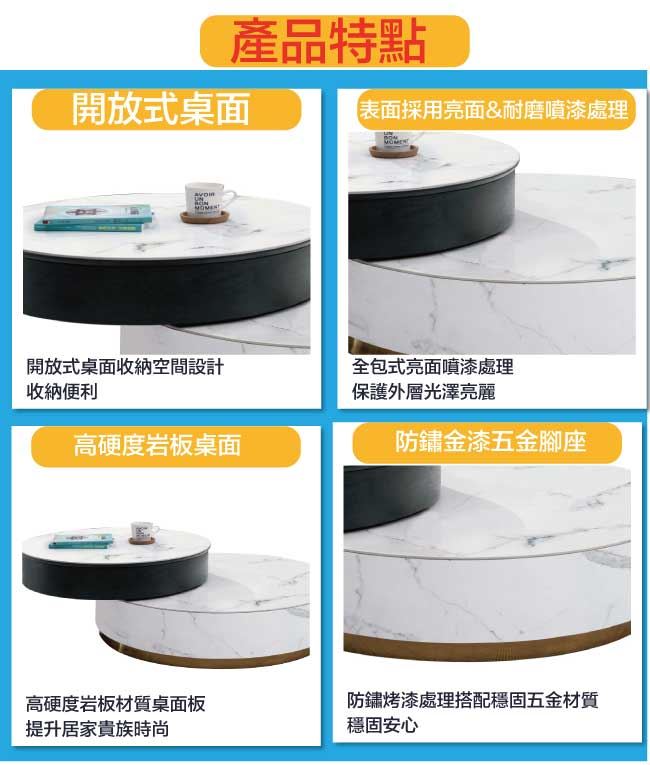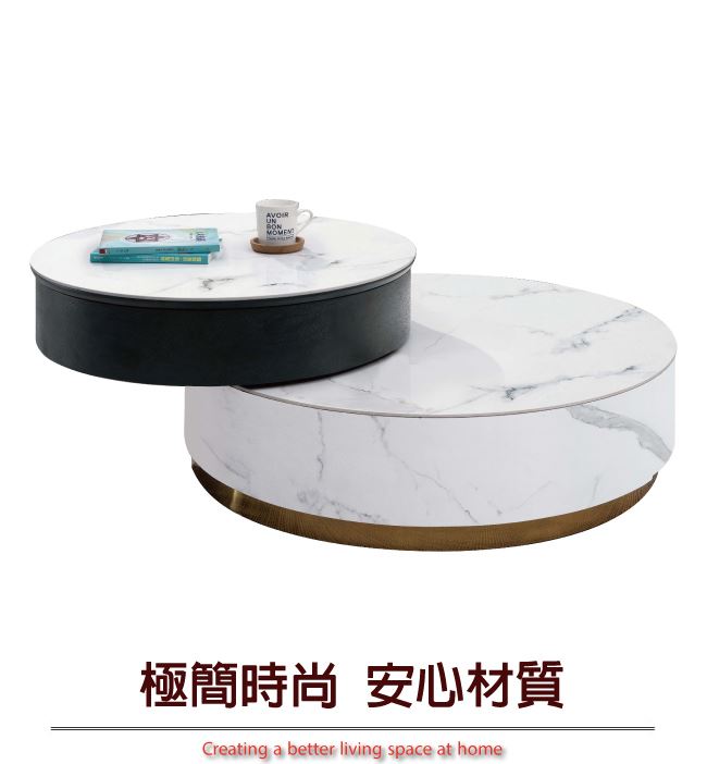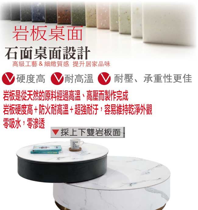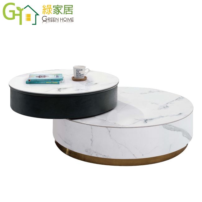 【綠家居】聖多美雙色3尺岩板旋轉升降機能大茶几/大圓几組合