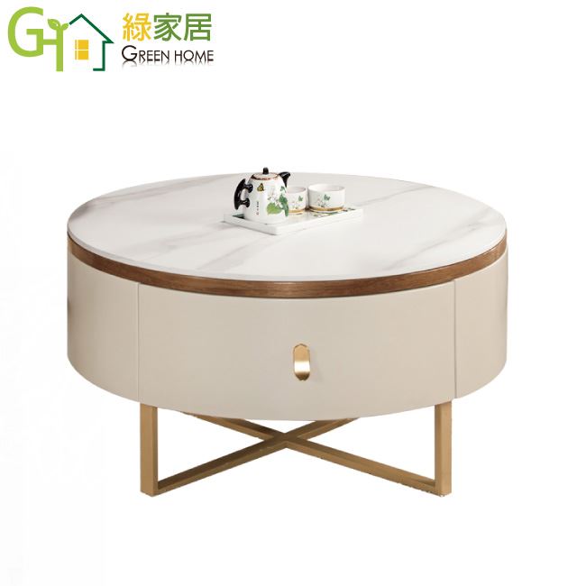 【綠家居】瑪西卡2.7尺岩板大茶几/圓几