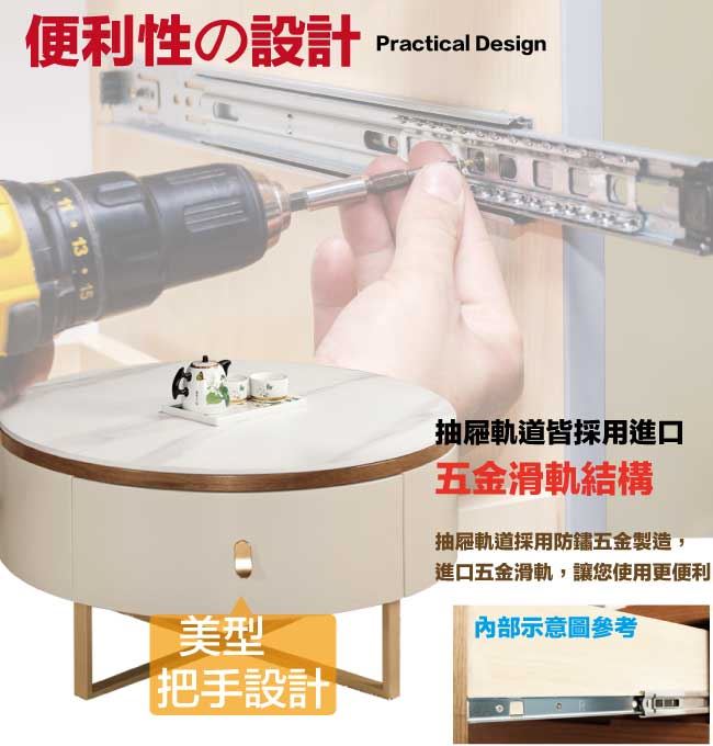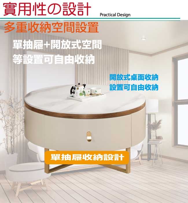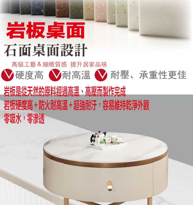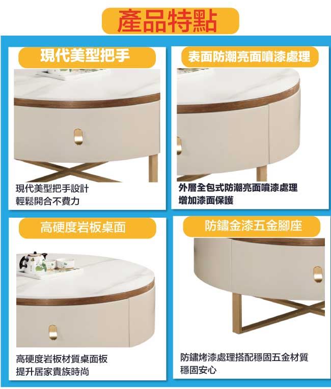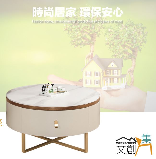 商 品 介 紹 | 【綠家居】瑪西卡2.7尺岩板大茶几/圓几 時尚雙色系+現代簡約風格+安心材質製造,整體採用防潮MDF板+防鏽金漆五金腳座+五金滑軌結構+12mm高硬度岩板桌面板等安心材質製造,產品外層採用防潮亮面噴漆處理搭配採用單抽屜+開放式收納等收納空間設計,全由專人配送到家,專業安心服務,替你省下更多時間! 【商品特色】 時尚雙色系+現代簡約風格+安心材質製造,使用放心+搭配居家更便利 採用防潮MDF板+防鏽金漆五金腳座+五金滑軌結構+12mm高硬度岩板桌面板等安心材質製造 產品外層採用防潮亮面噴漆處理 搭配採用單抽屜+開放式收納等收納空間設計 此商品不需要DIY組立,此商品為組立後之成品 品質保證、專業設計、貼心服務 全由專人配送到家,專業安心服務,替您省下更多時間