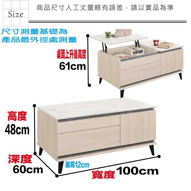 【綠家居】納莉爾3.3尺升降機能大茶几