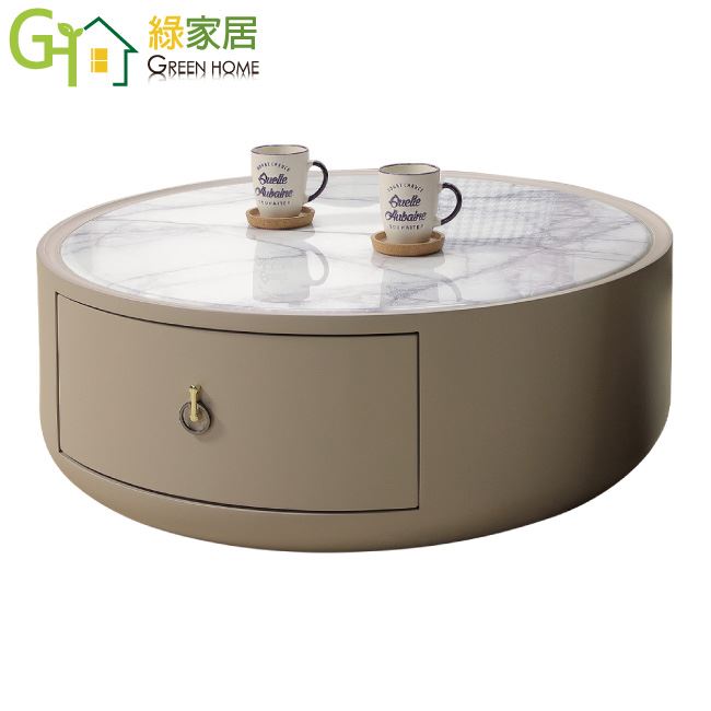 【綠家居】伍迪3尺雲紋石面大茶几/圓几