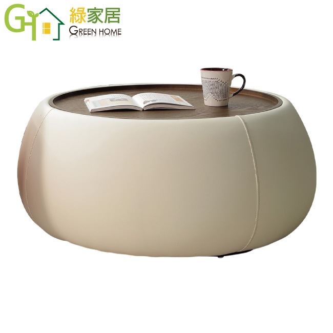 【綠家居】比威爾2.8尺透氣皮革可收納大茶几/圓几