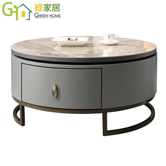 【綠家居】瑪莎2.7尺岩板旋轉大茶几/圓几(桌面可旋轉展開)