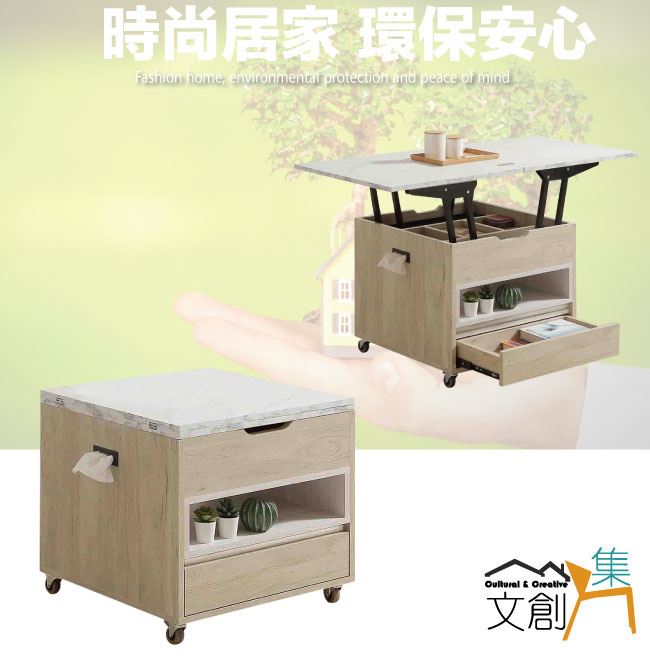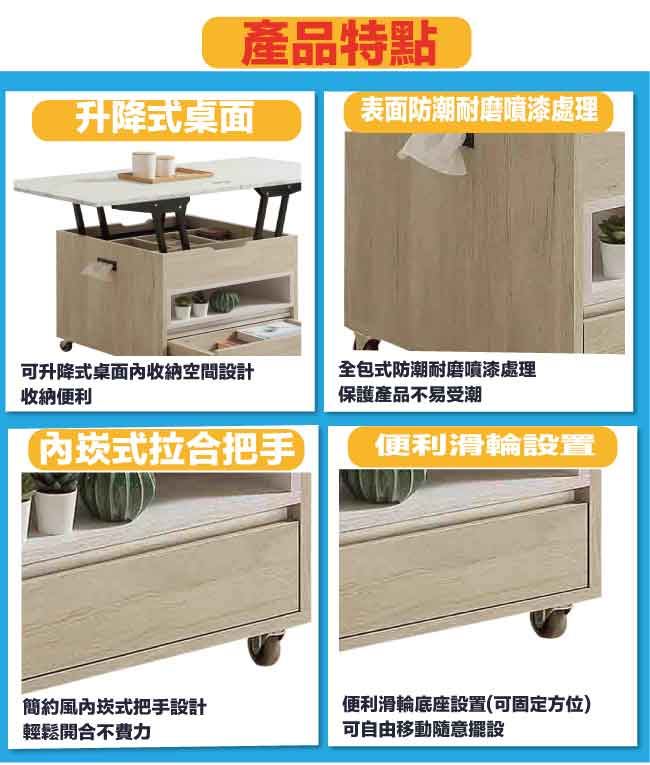 【綠家居】愛坦2尺升降機能小茶几(底部滑輪可移動擺設)