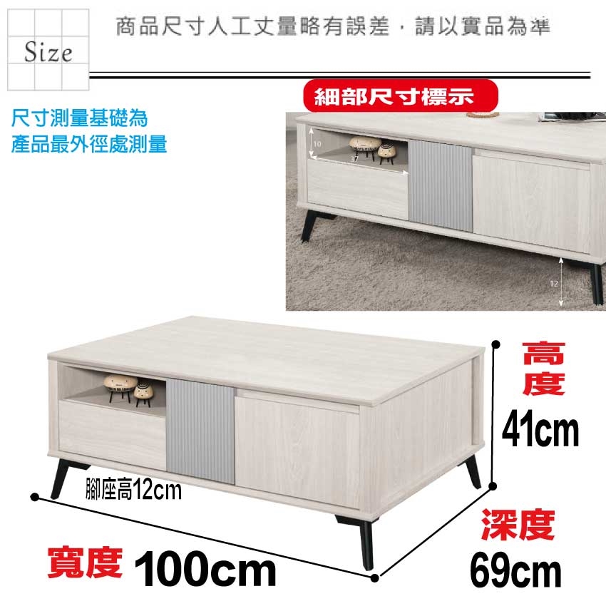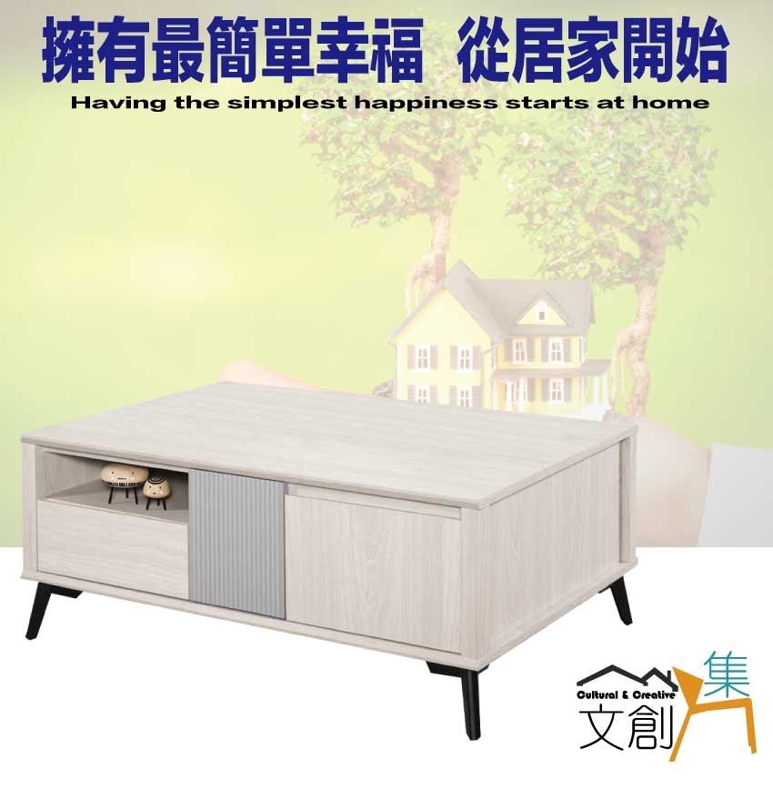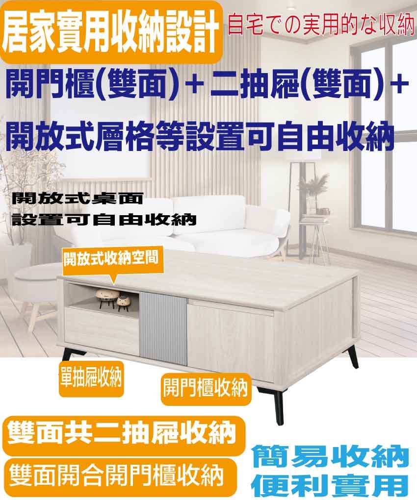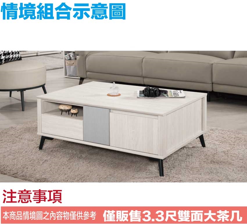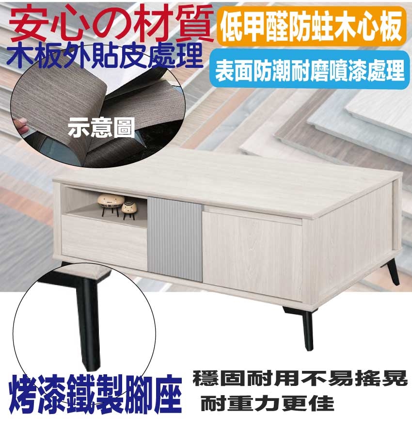 - ◆產品名稱:【綠家居】克萊雙色3.3尺開門二抽大茶几