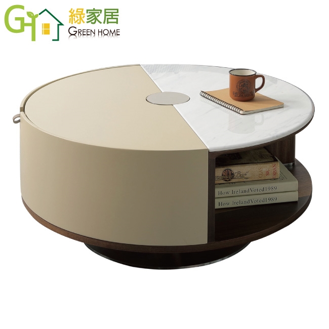 【綠家居】維可2.7尺雲紋石面旋轉大茶几/圓几(桌面可上掀使用)