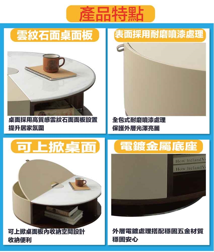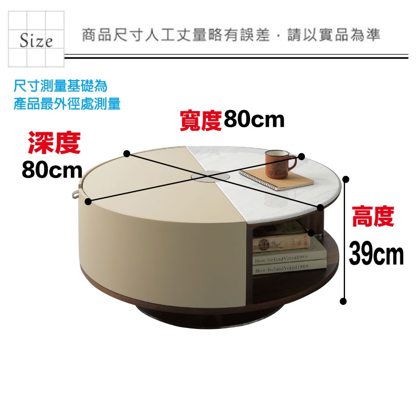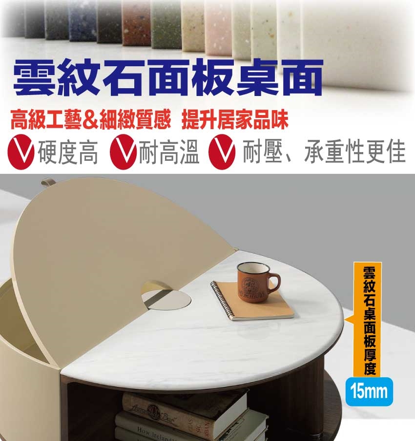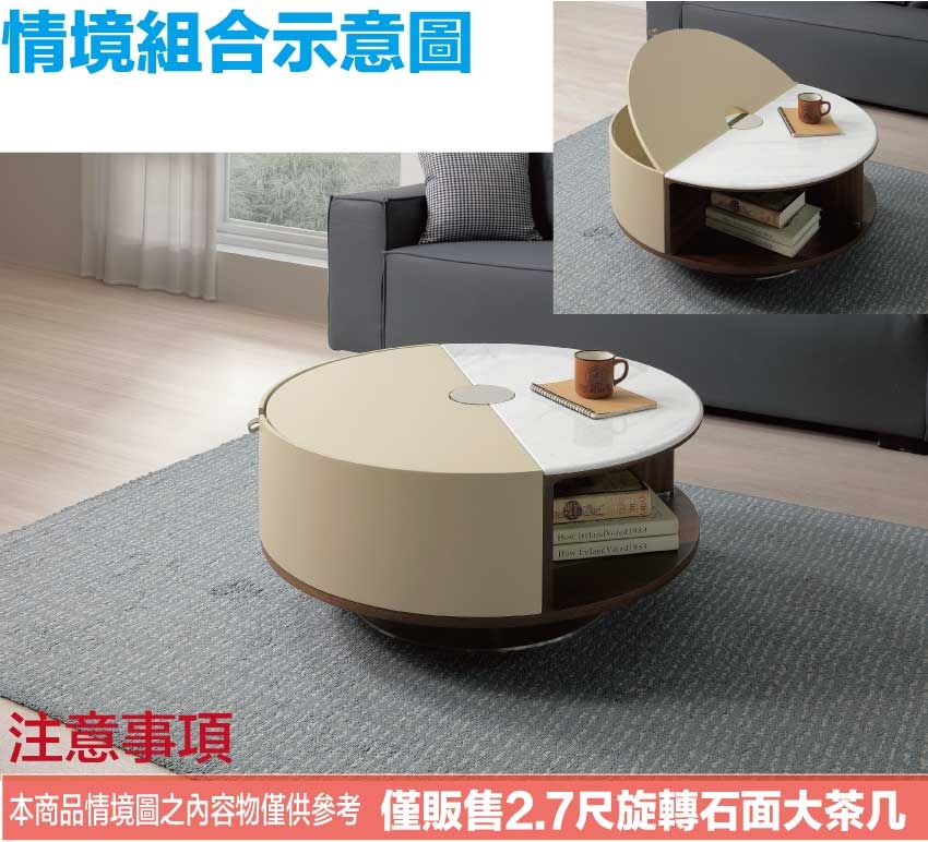 - ◆產品名稱:【綠家居】維可2.7尺雲紋石面旋轉大茶几/圓几(桌面可上掀使用)