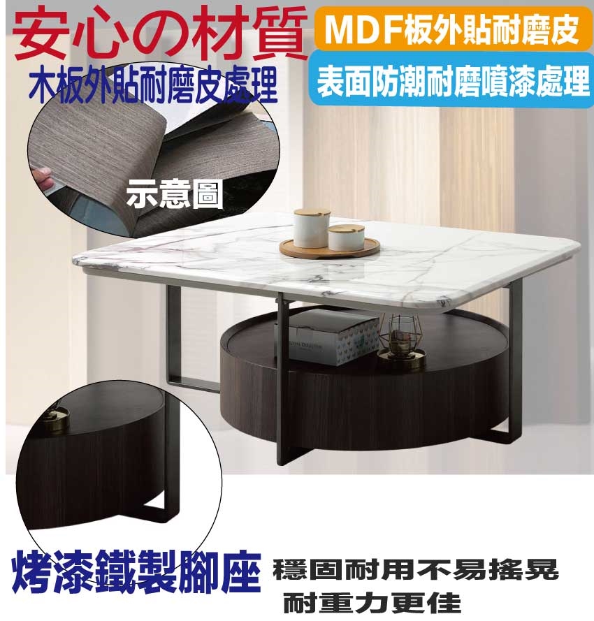 ★偏遠地區需額外加收運費,下標請先問與答詢問★ ★下訂前注意 由於商品流動較快,下訂前請先詢問是否有貨在下訂喔~★ 【綠家居】英格3.2尺雲紋石面單抽大茶几 現代雙色系+安心材質製造,使用放心+搭配居家更便利,採用防潮MDF板+烤漆鐵製腳座+五金滑軌結構+15mm雲紋石面桌面板等安心材質製造 ,外層採用防潮耐磨噴漆處理搭配採用單抽屜+開放桌面等收納空間設計,全由專人配送到家,專業安心服務,替你省下更多時間!
