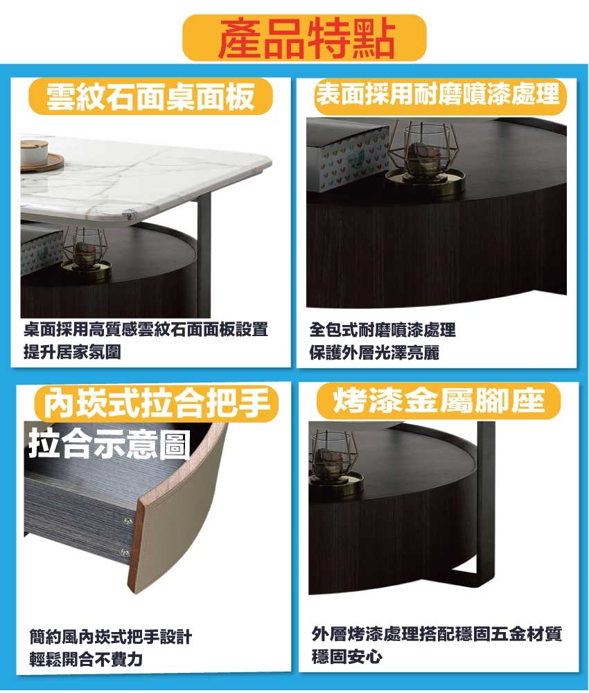 - ◆產品名稱:【綠家居】英格3.2尺雲紋石面單抽大茶几
