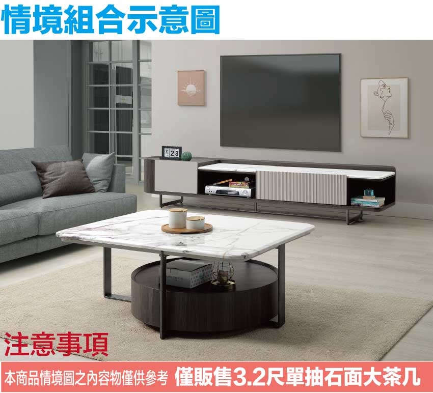 【綠家居】英格3.2尺雲紋石面單抽大茶几