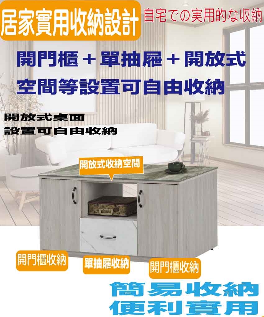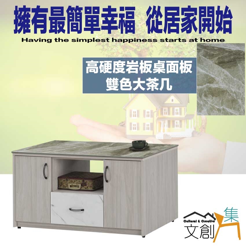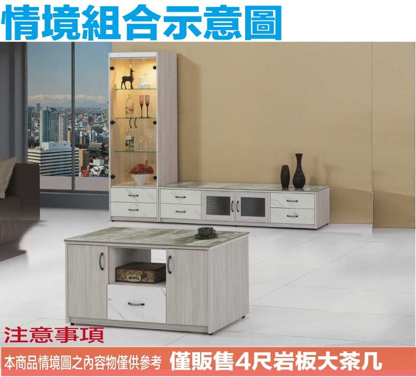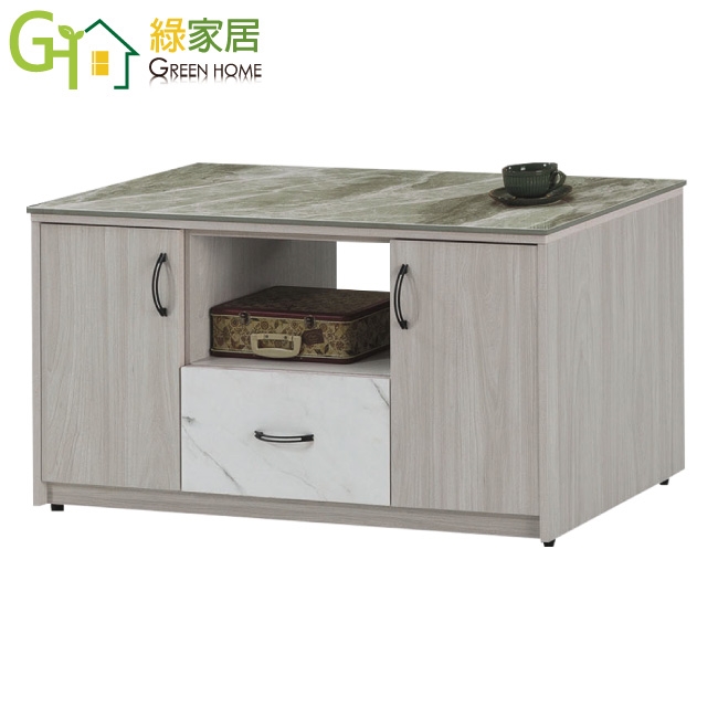 【綠家居】皮登3.7尺開門單抽岩板大茶几