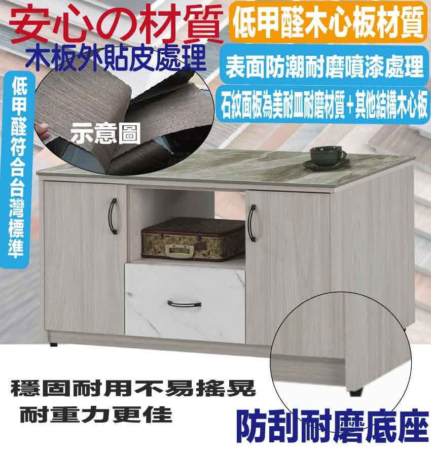 ★偏遠地區需額外加收運費,下標請先問與答詢問★ ★下訂前注意 由於商品流動較快,下訂前請先詢問是否有貨在下訂喔~★ 【綠家居】皮登3.7尺開門單抽岩板大茶几(仿大理石紋路耐磨美耐皿面板) 木紋雙色系+現代簡約風格+安心材質製造,使用放心+搭配居家更便利,整體採用防蛀木心板+防潮耐磨底座(可調高低水平)+仿大理石紋路耐磨美耐皿面板+防夾手緩衝五金+8mm高硬度岩板桌面板等安心材質製造搭配外層採用防潮耐磨噴漆處理 ,採用開門櫃+單抽屜+開放層格等收納空間設計,全由專人配送到家,專業安心服務,替你省下更多時間!