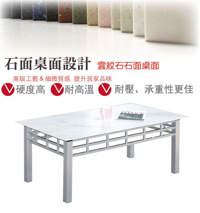【綠家居】赫拉 時尚銀4.3尺雲紋石面大茶几