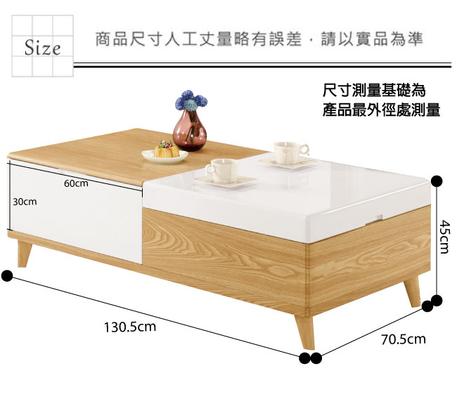 產品尺寸:(寬)130.5 x (深) 70.5 x(高) 45 / 公分