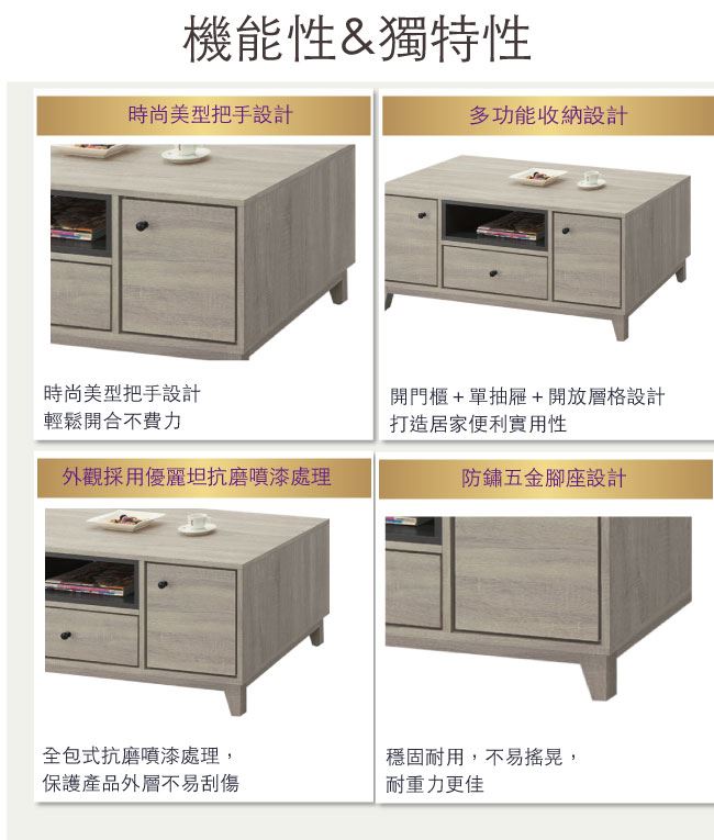 【綠家居】約納 時尚4尺二門單抽大茶几