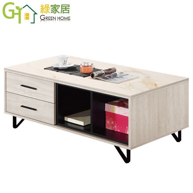 材質 | ◆產品名稱: 【綠家居】艾藍 時尚4.1尺雲紋石面大茶几 尺寸:(寬)122x(深)62x(高)49.2/公分 ◆材質: 材質:防蛀木心板+五金滑軌結構+黑鐵砂腳座+8mm雲紋石面板 外層採用耐磨噴漆處理