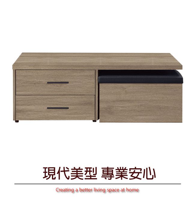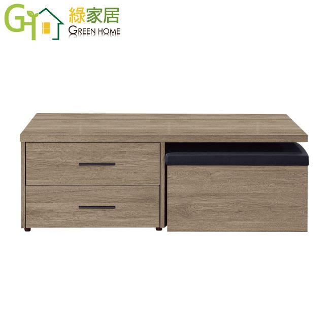 【綠家居】莉安4尺二抽木紋大茶几(二色可選+內附二張椅凳)