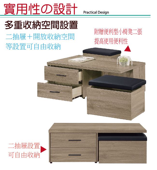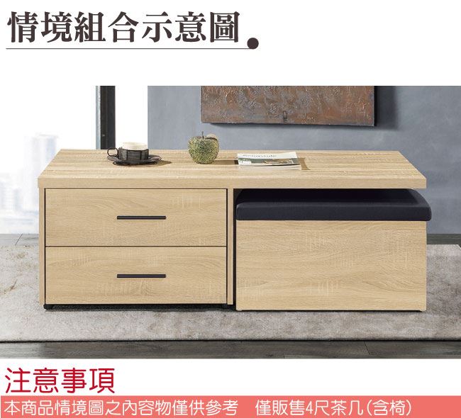 - ◆產品名稱:【綠家居】莉安4尺二抽木紋大茶几(二色可選+內附二張椅凳)