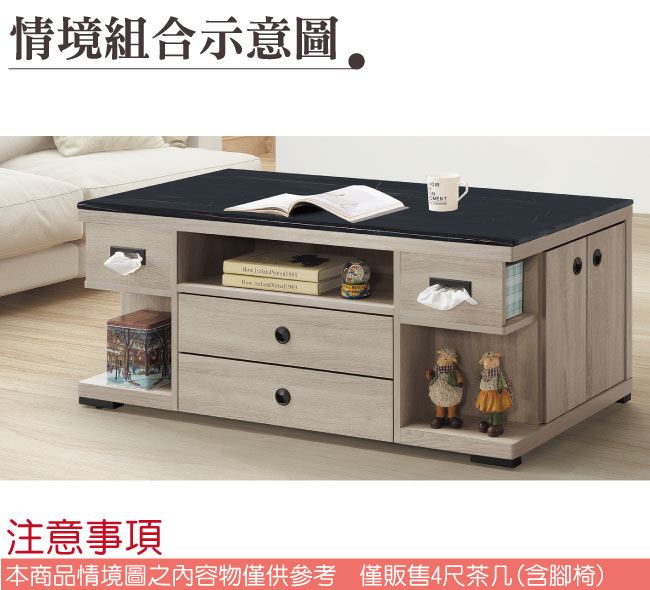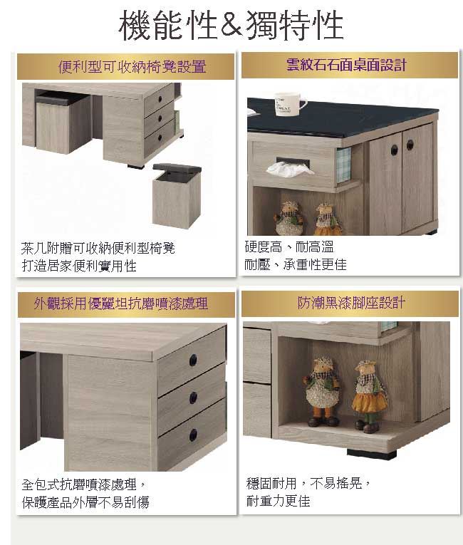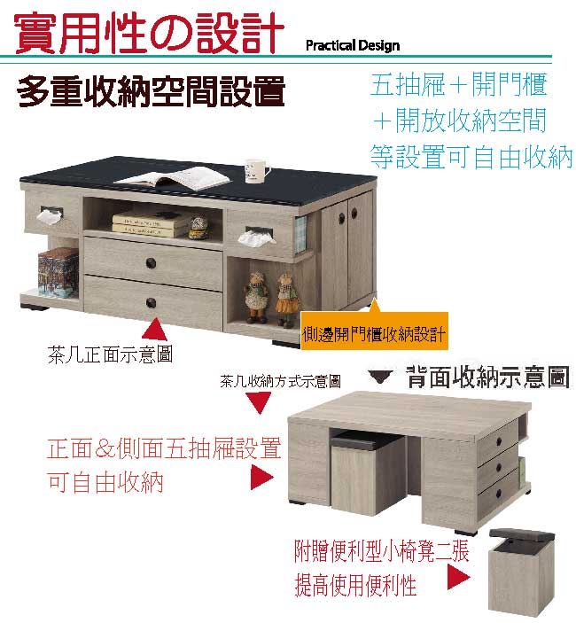 - ◆產品名稱:【綠家居】凱葳雲紋石面4尺五抽二門大茶几(內附二張椅凳)